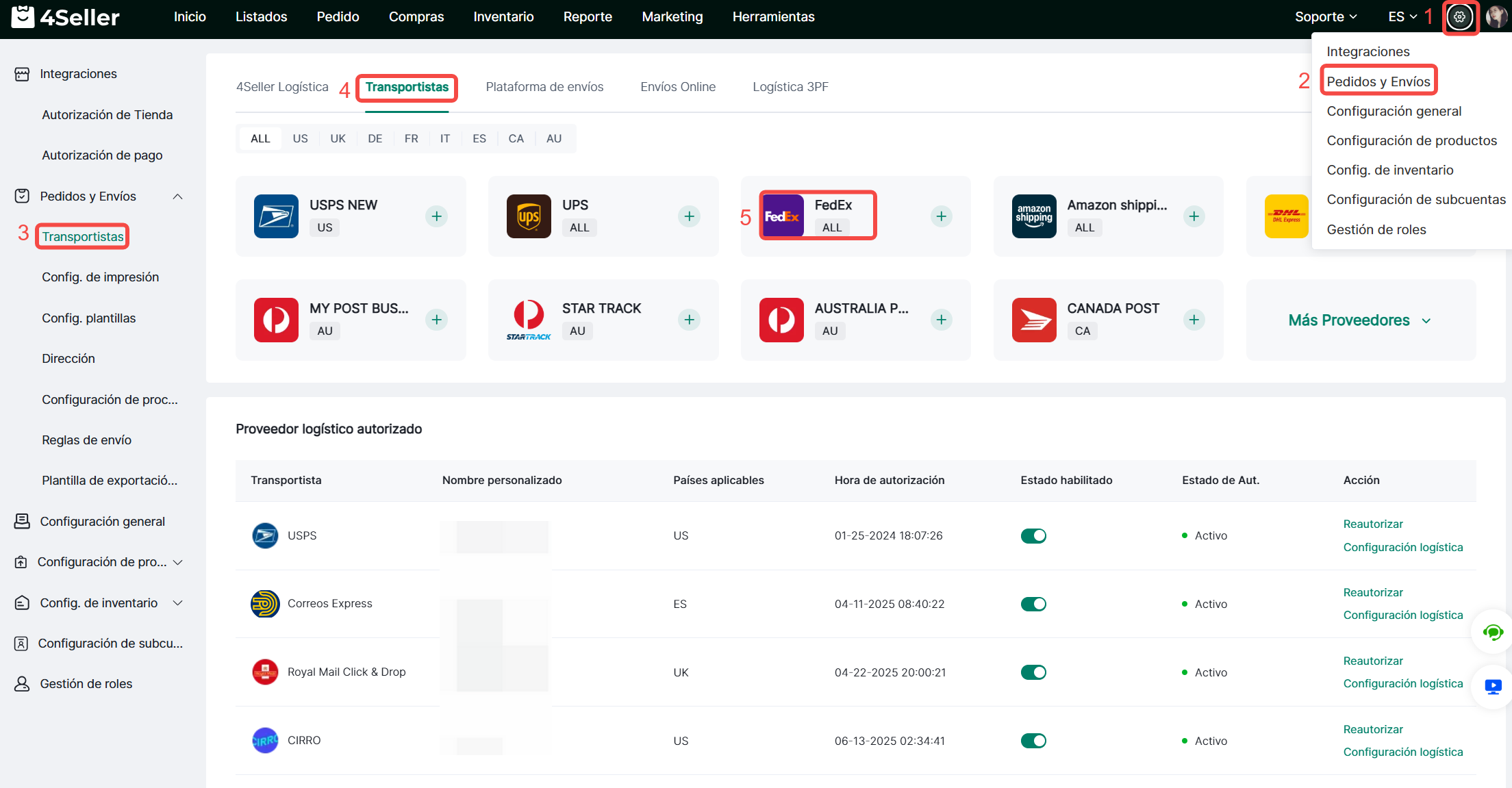 4Seller permite integrar el transportista FEDEX, facilitando la gestión ágil de envíos para vendedores.