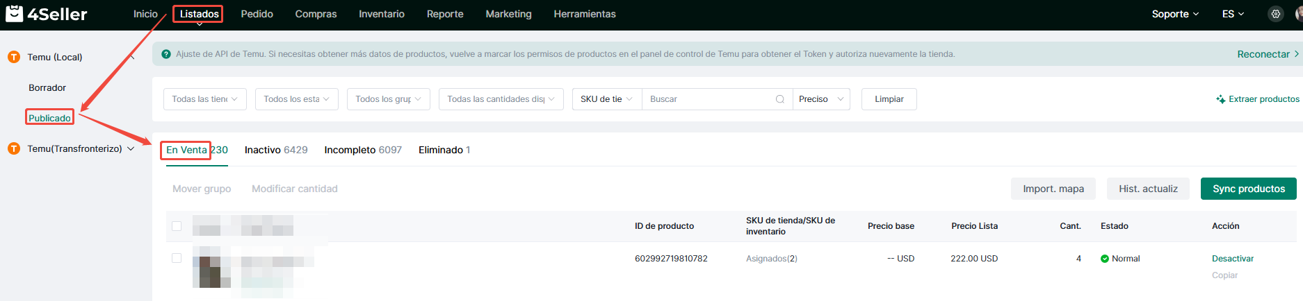 En 4Seller, los productos bajo "Activo" en Shopify, Amazon, TikTok, eBay, Etsy, WooCommerce y Shein Tienda pueden sincronizarse a Temu Tienda mediante "Copiar a Tiendas" y "Copiar por tienda".Tomemos como ejemplo la sección "Activo" en Amazon: