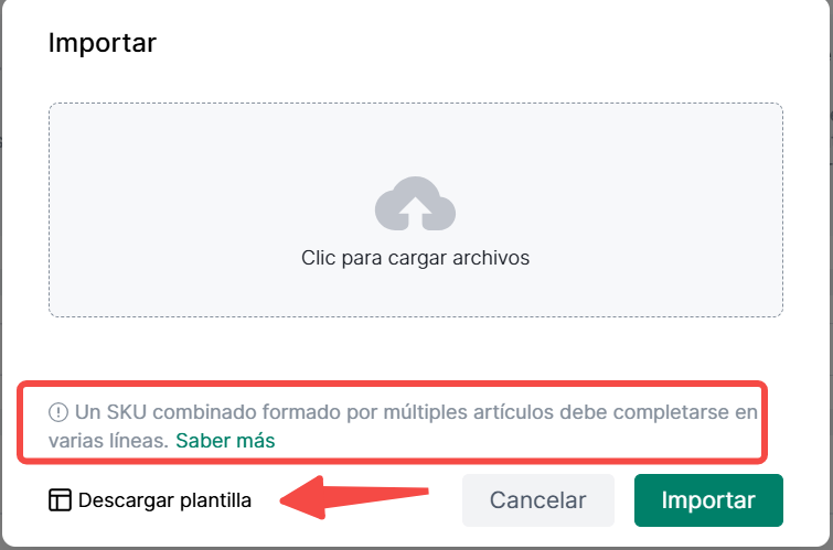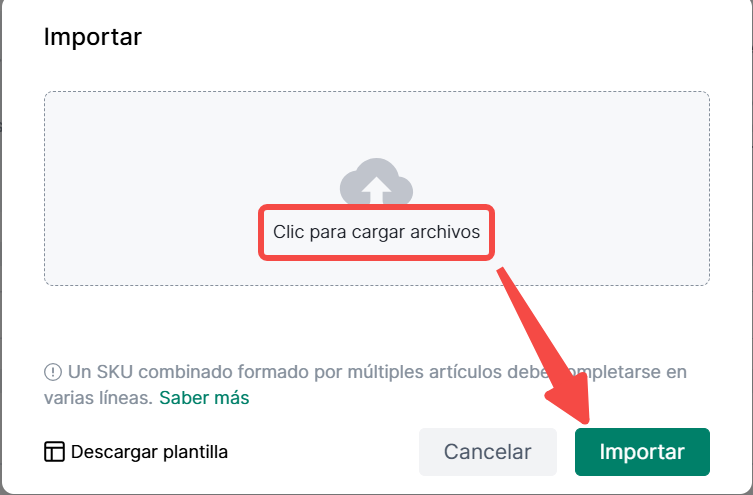 4Seller permite importar SKU combinados, que consisten en múltiples sub-SKU vendidos en paquete (ej: 1 bolígrafo + 1 cuaderno). El inventario se descontará simultáneamente de todos los sub-SKU.