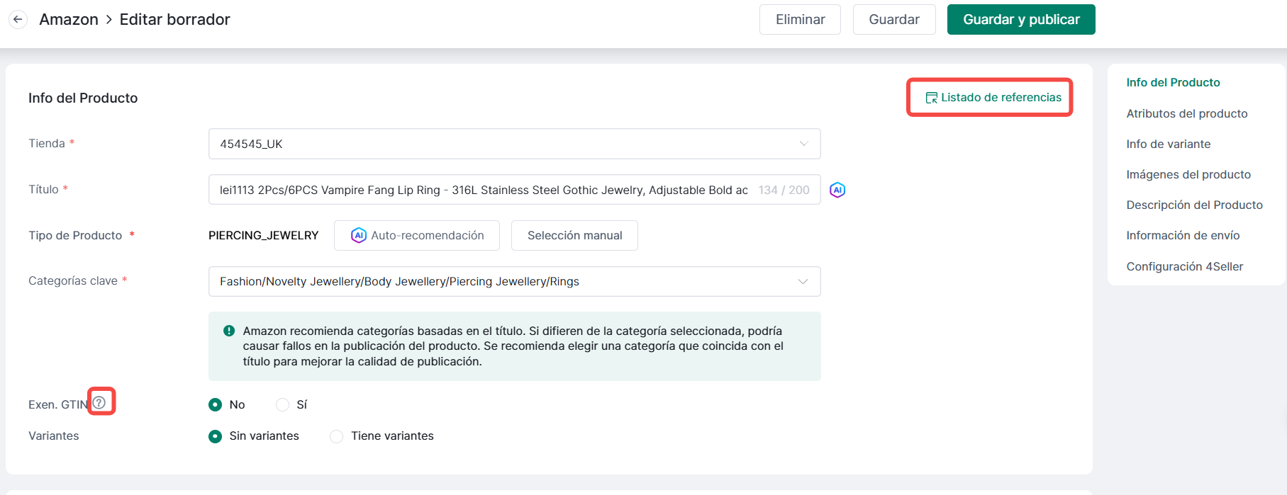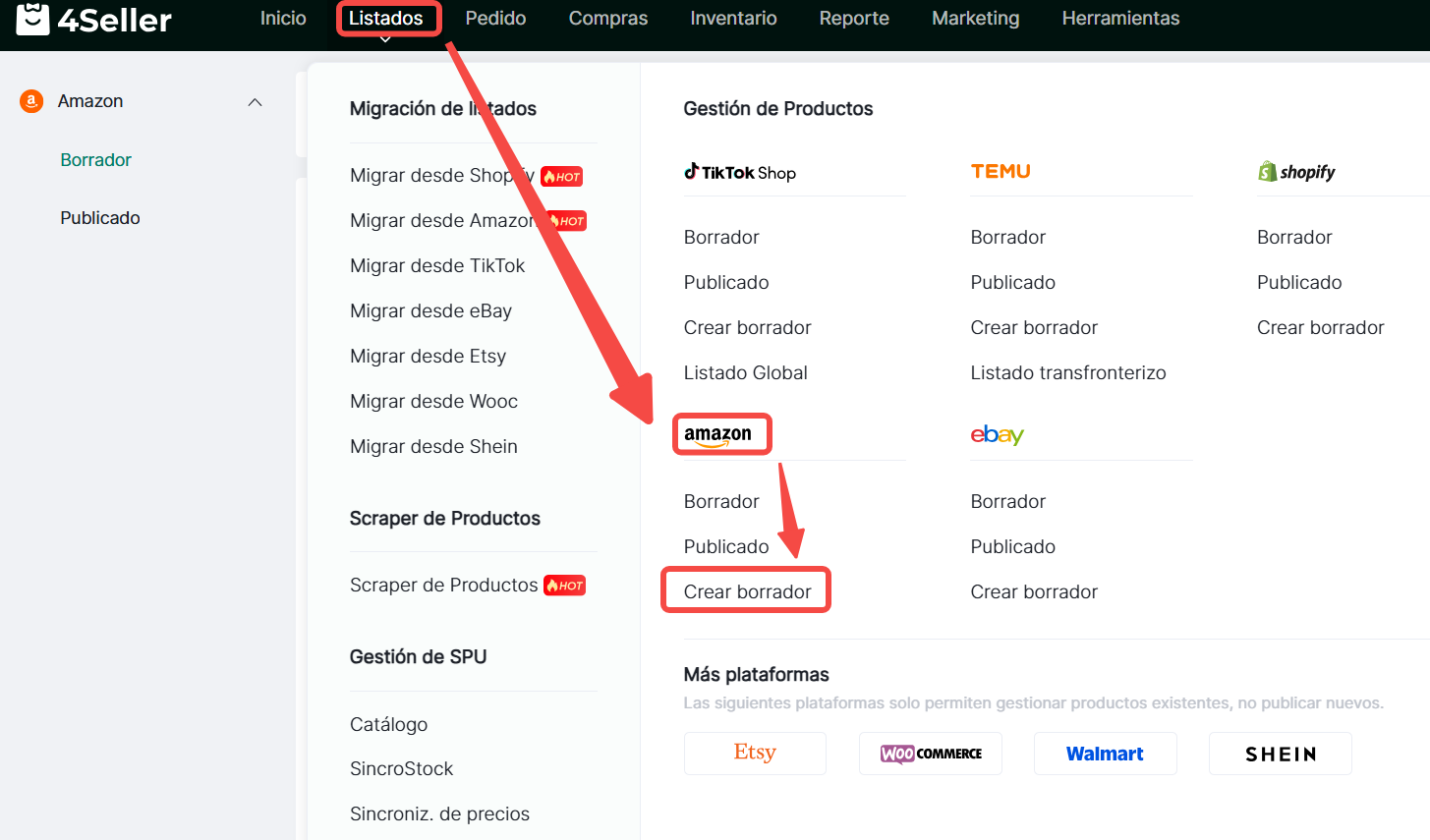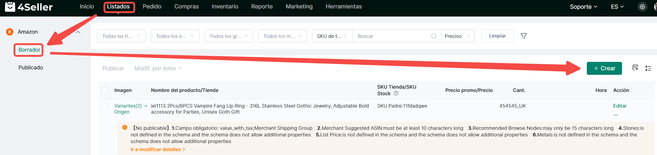 Acceso 2: Listados--Amazon--Borradores--Crear