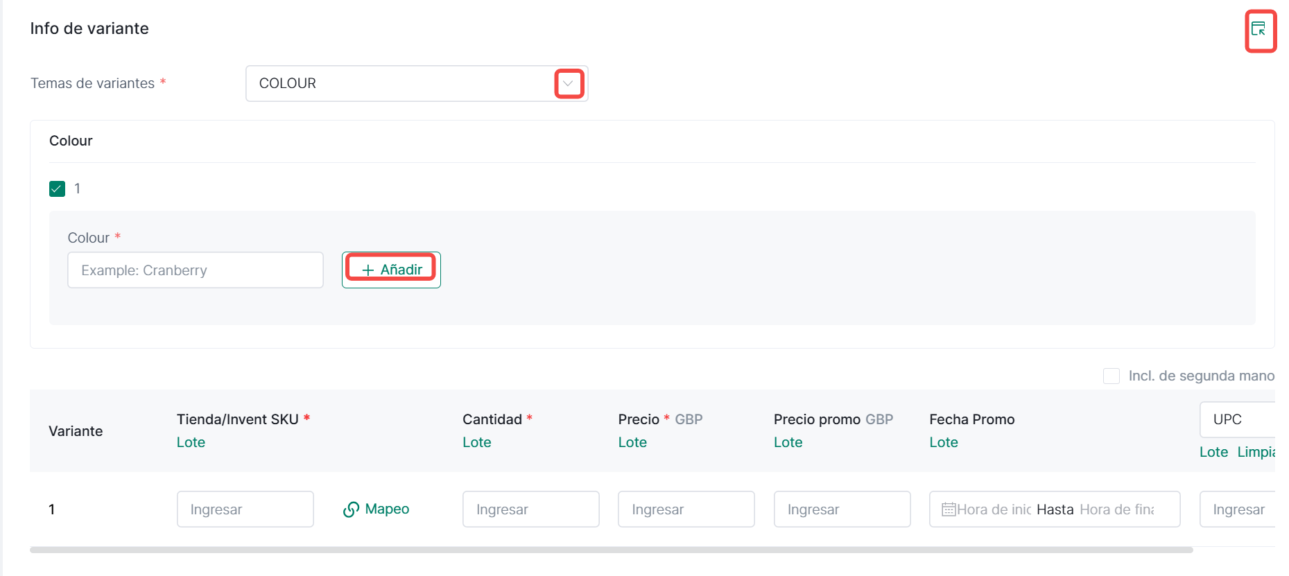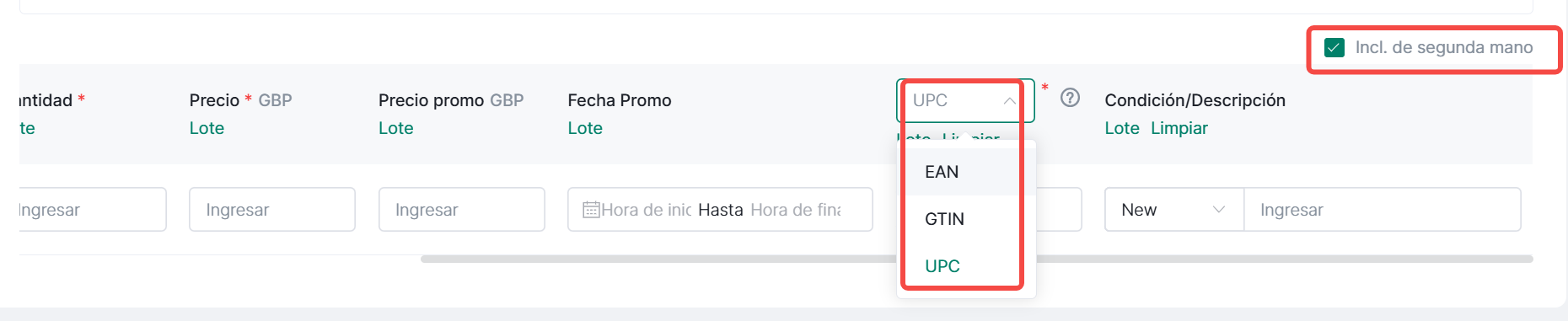 a: El UPC requiere 12 dígitos; el EAN, 13 dígitos; y el GTIN, 12, 13 o 14 dígitos. Los códigos UPC, GTIN y EAN correspondientes a diferentes variantes de SKU no se pueden reutilizar.