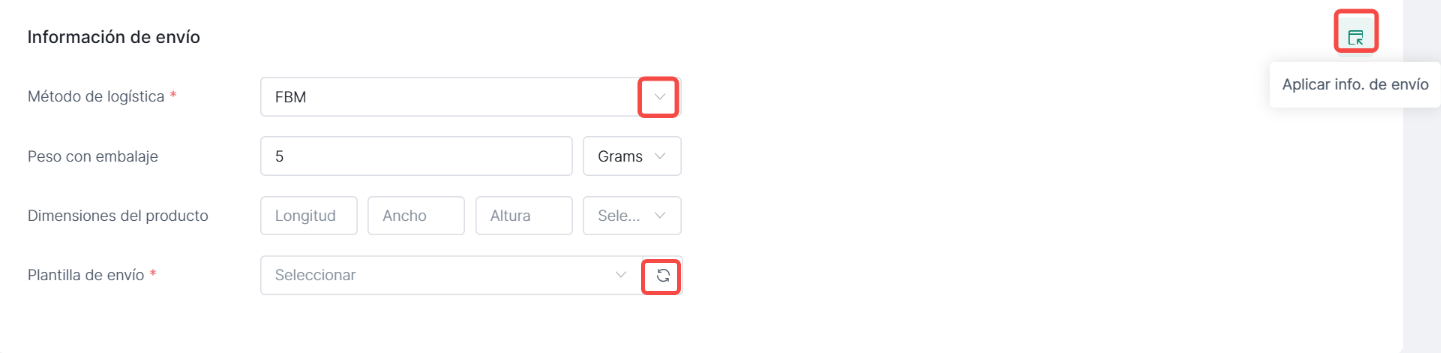 b: Si el método logístico es Logística de Amazon (FBA), no es necesario indicar la cantidad.