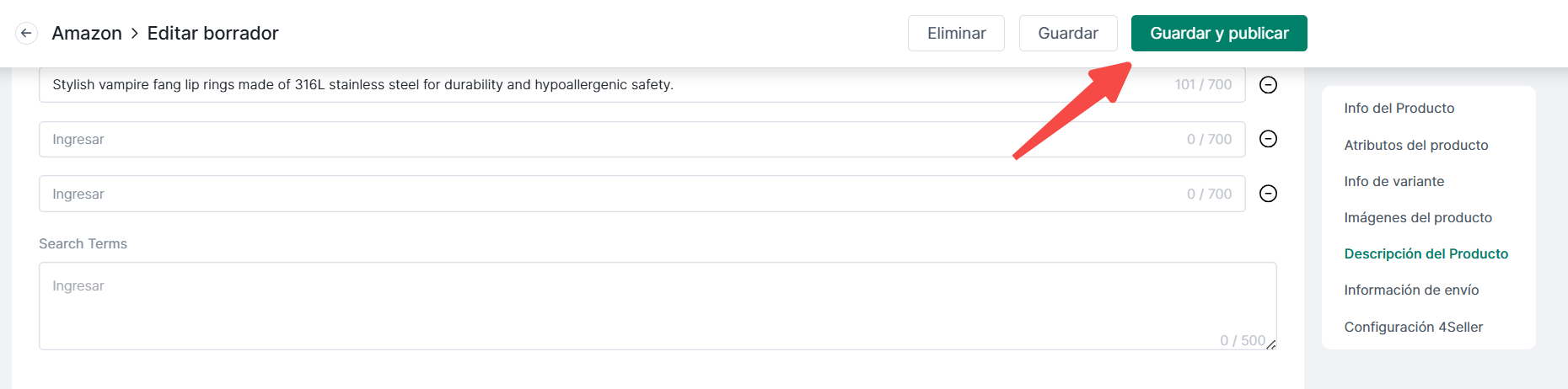 Paso 2: Haz clic en Guardar o Guardar y Publicar para listar en Amazon