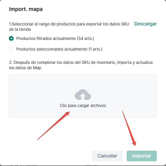 2. Selecciona el rango de productos a exportar y haz clic en Descargar > Descargar archivo.