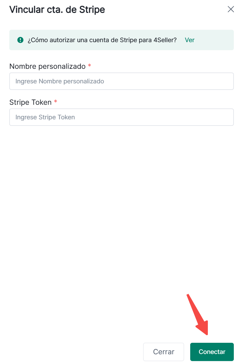Paso 9: Personalizar Nombre--Completar el token de Stripe--Hacer clic en "Connect"