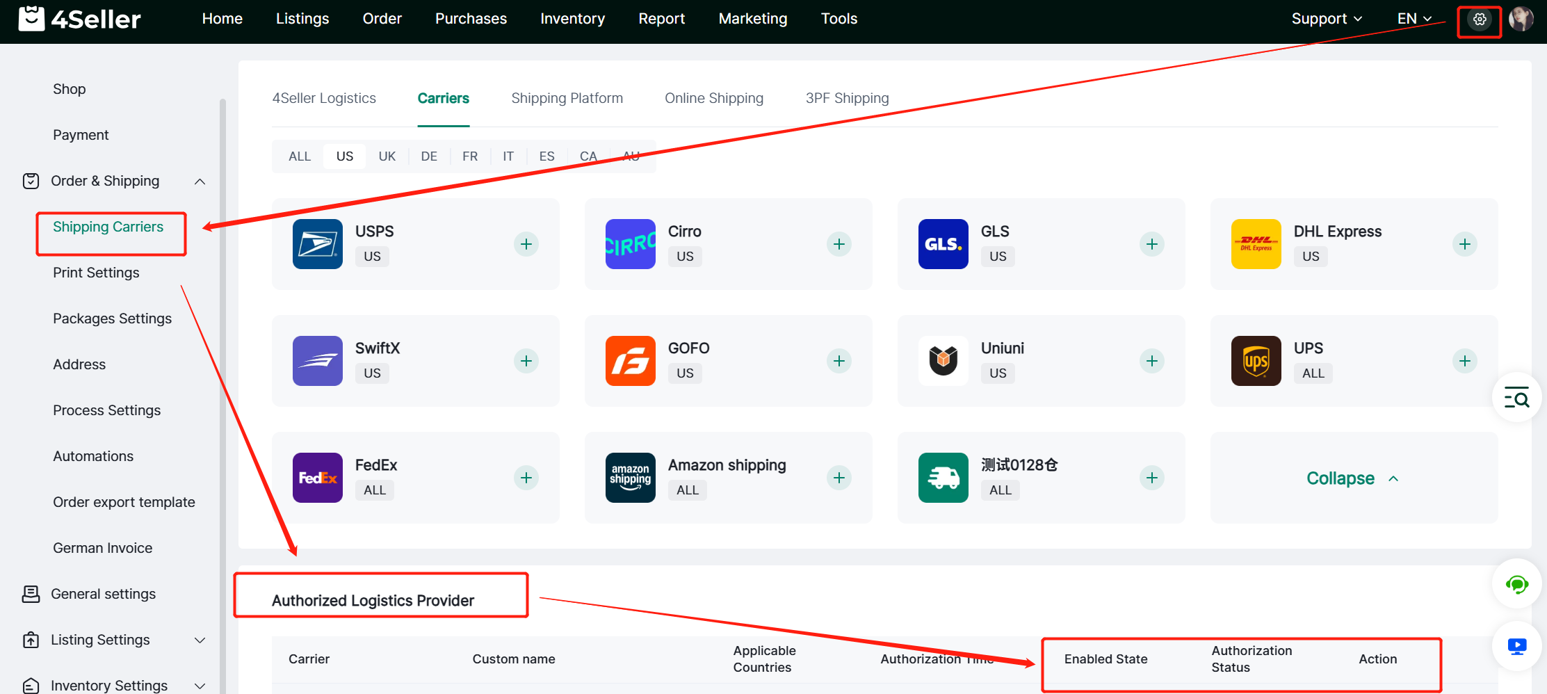 Paso 3: Tras la conexión, verifica el estado de autorización en "Proveedor Logístico Autorizado"