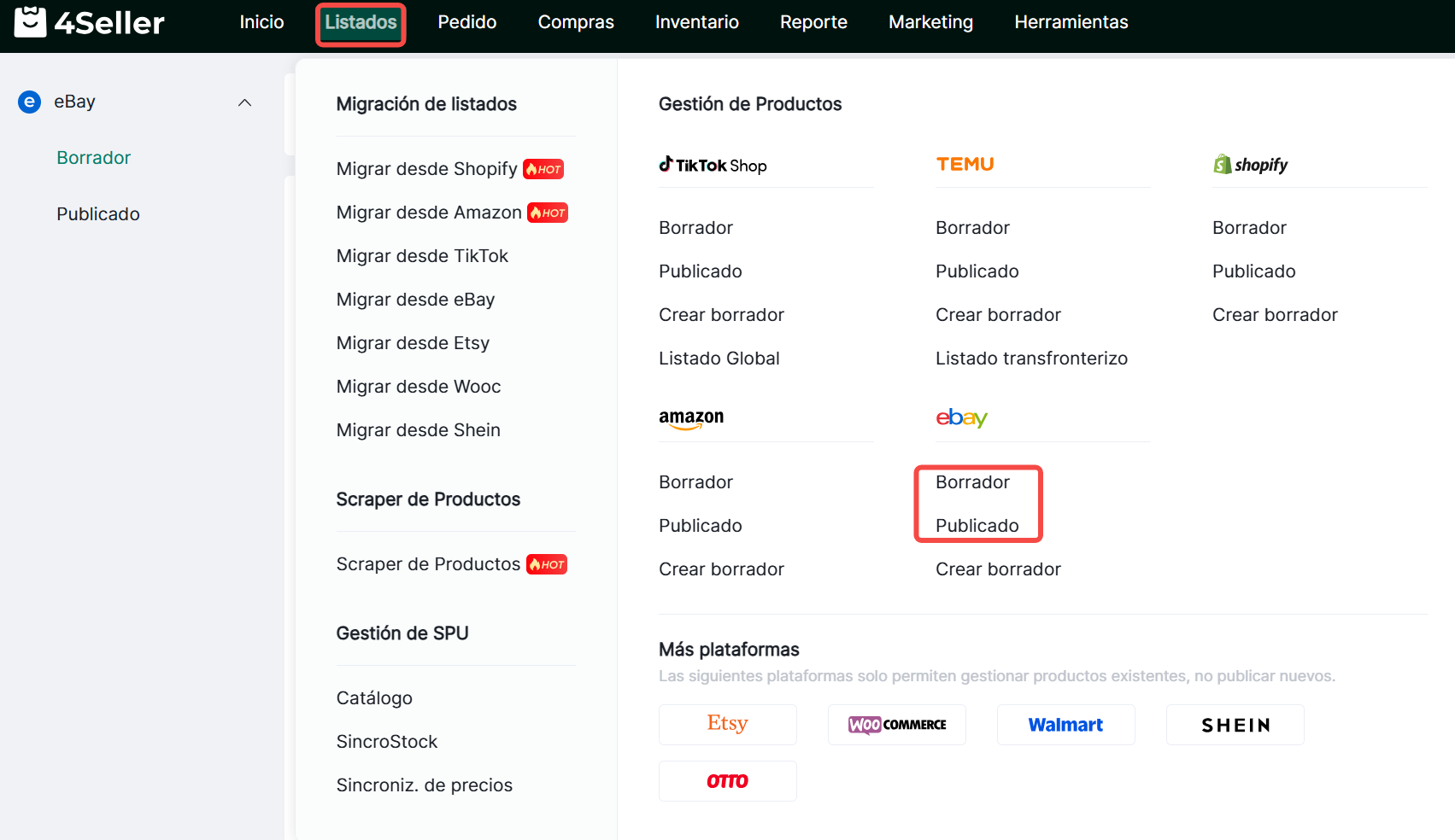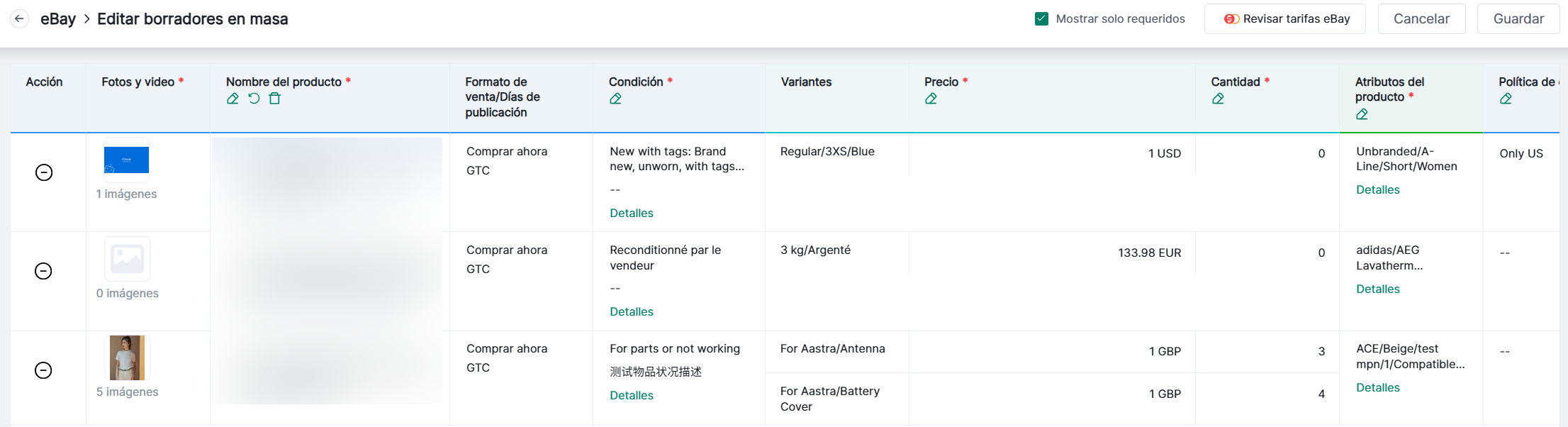 4Seller permite la modificación masiva de atributos individuales en múltiples productos para mejorar la eficiencia de listados en eBay.