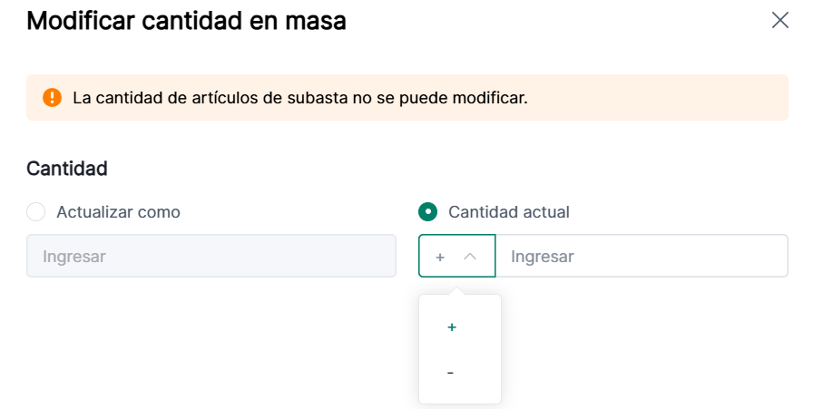(1) Solo soporta modificar cantidades para listados "Compra Ya"; las cantidades de subasta no pueden cambiarse;