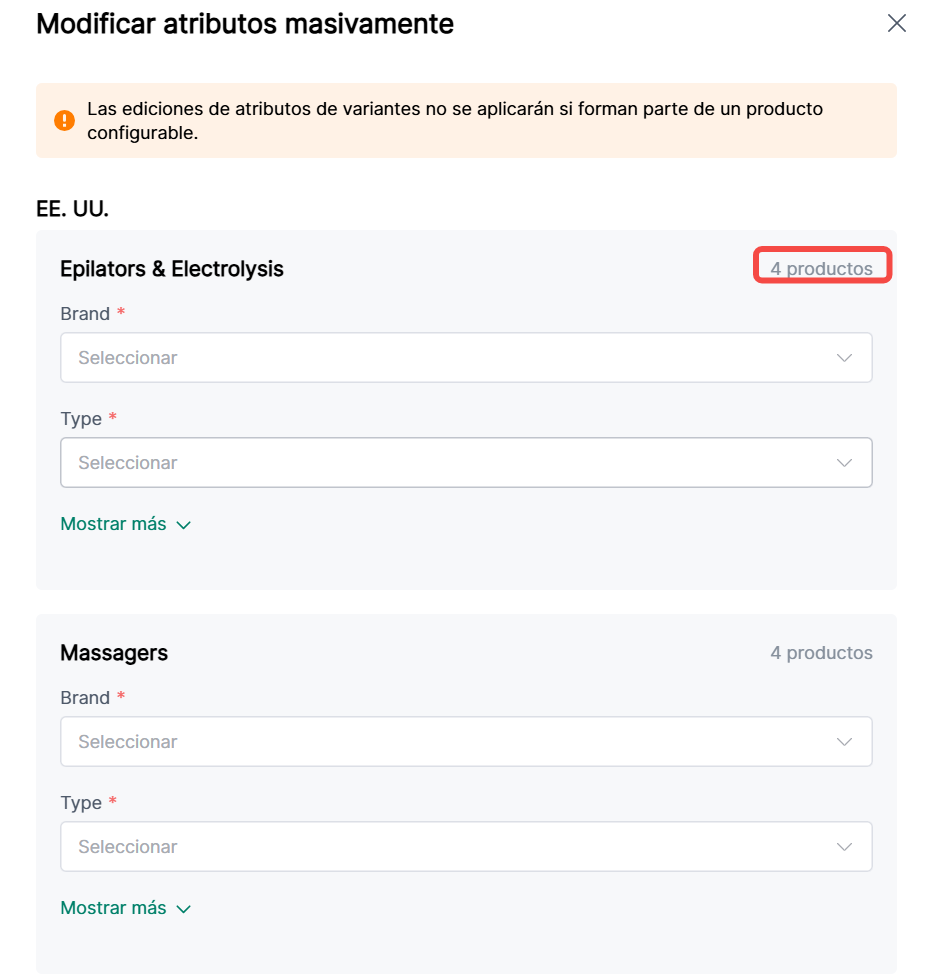 4. Modificación Masiva de Atributos de Producto: