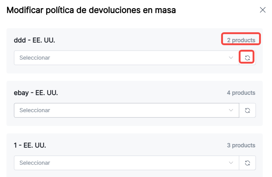 6. Actualización Masiva de Políticas de Devolución: