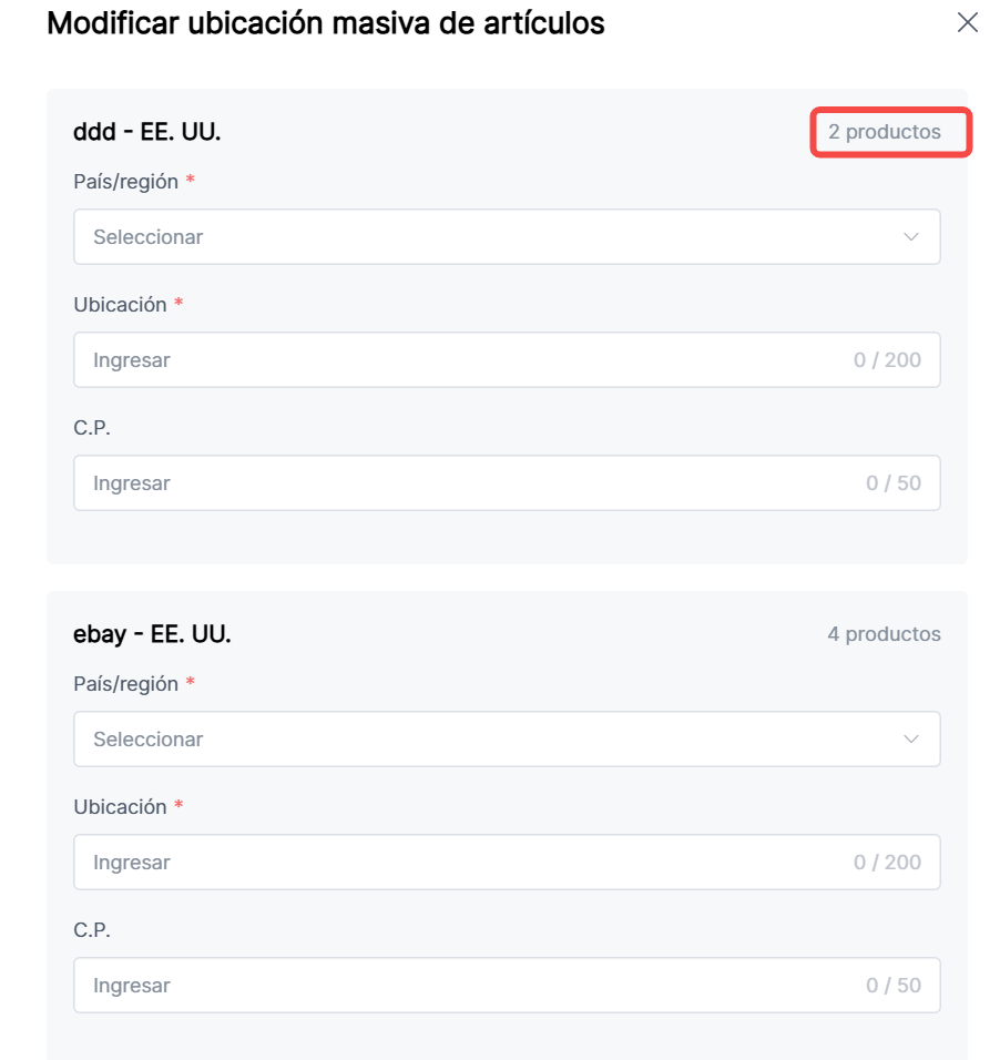 7. Modificación Masiva de Ubicación del Artículo: