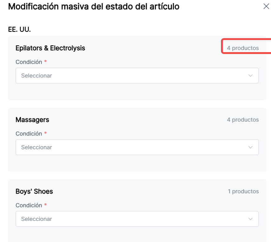 8. Modificación Masiva de Condición del Artículo:
