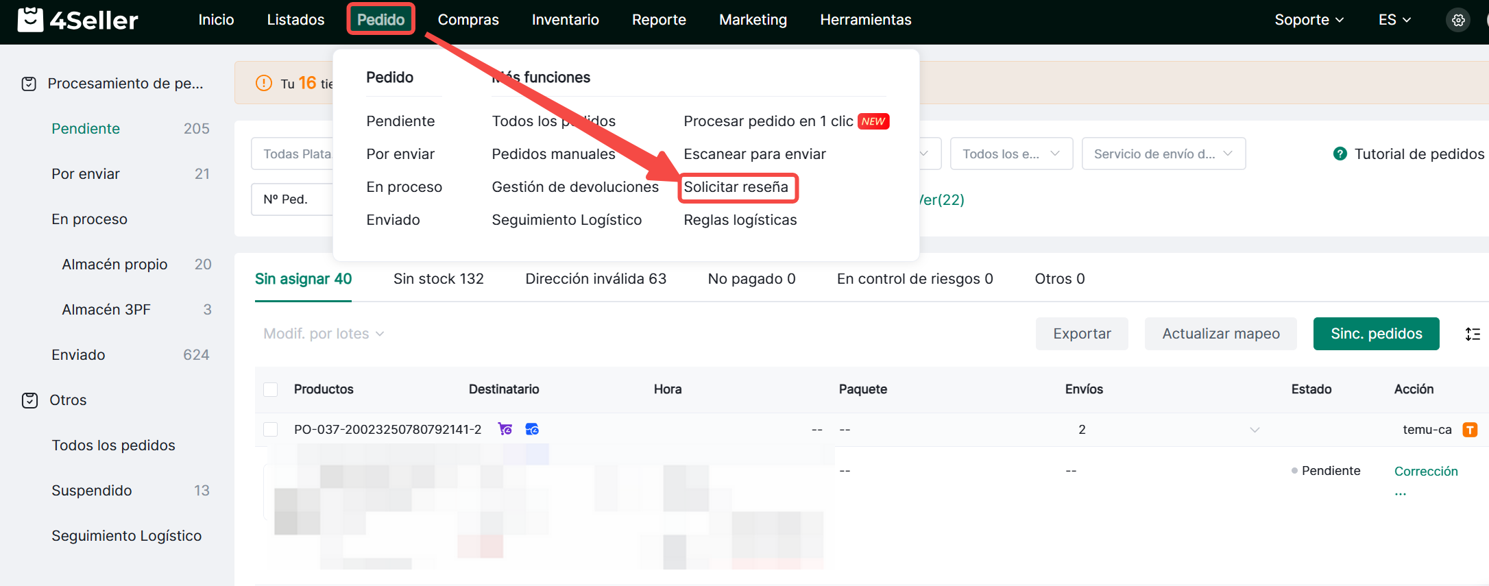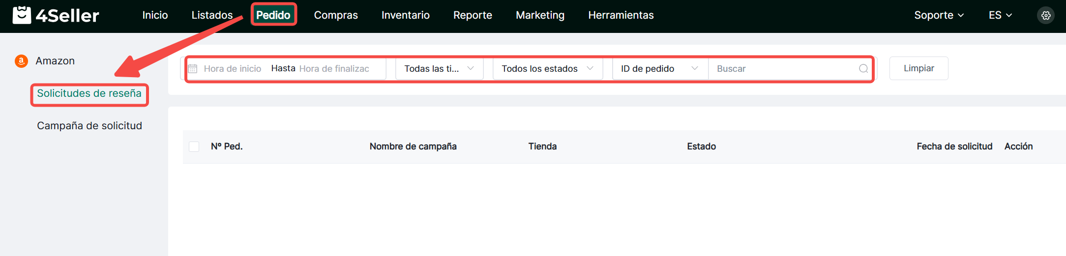 1. Acceso: Click Pedidos> Solicitud de Reseñas Amazon