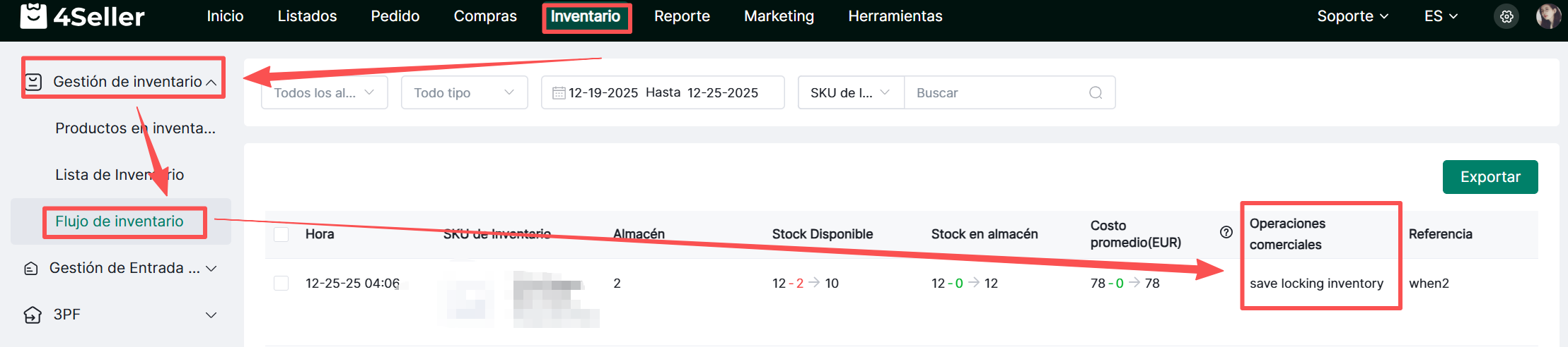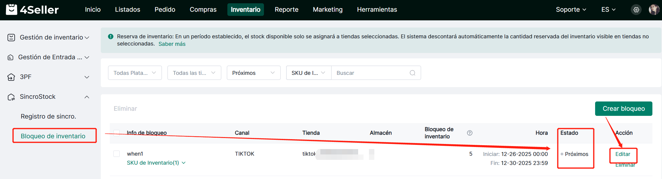 Nota: El inventario bloqueado se reservará por adelantado, y se descontará del SKU correspondiente de la tienda según la hora de creación.