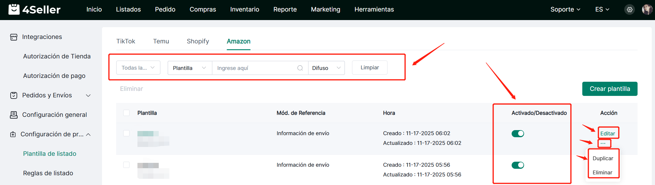 4Seller permite referenciar plantillas de listado al crear publicaciones en Amazon Store, lo que mejora la eficiencia del listado.