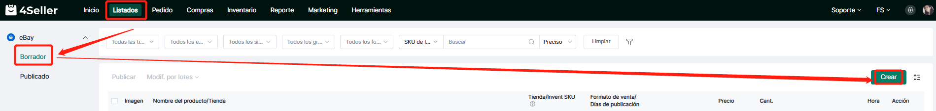 Paso 1: eBay Listados-- Borrador--Crear