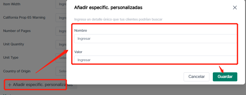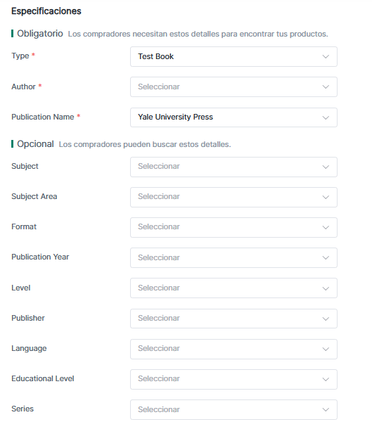Nota: Diferentes categorías tienen diferentes atributos de producto