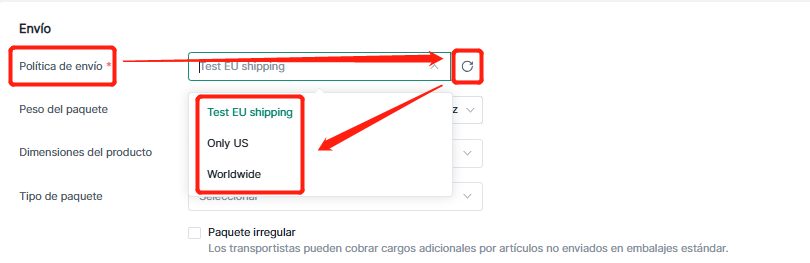 Configurar política ver artículo ayuda: ¿Cómo configurar políticas en eBay?