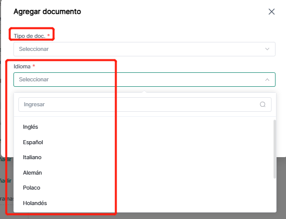 Nota: Documento producto: soporta selección múltiples idiomas