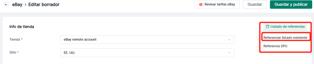 La página borradores eBay permite listar rápidamente referenciando información producto existente!