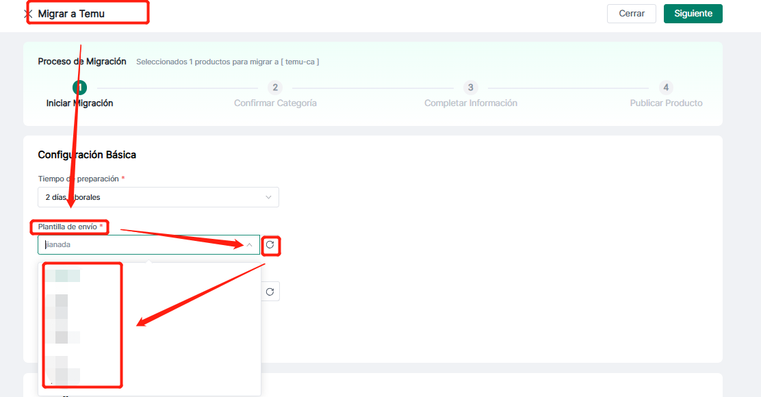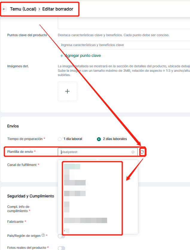 Paso 2: Tras configurar, volver a Seller--Hacer clic en el botón de actualización de plantilla de envío para sincronizar con 4Seller y seleccionar/rellenar la información.