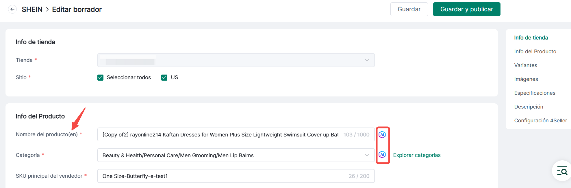 [Los títulos y categorías de productos también se pueden generar con asistencia de IA]