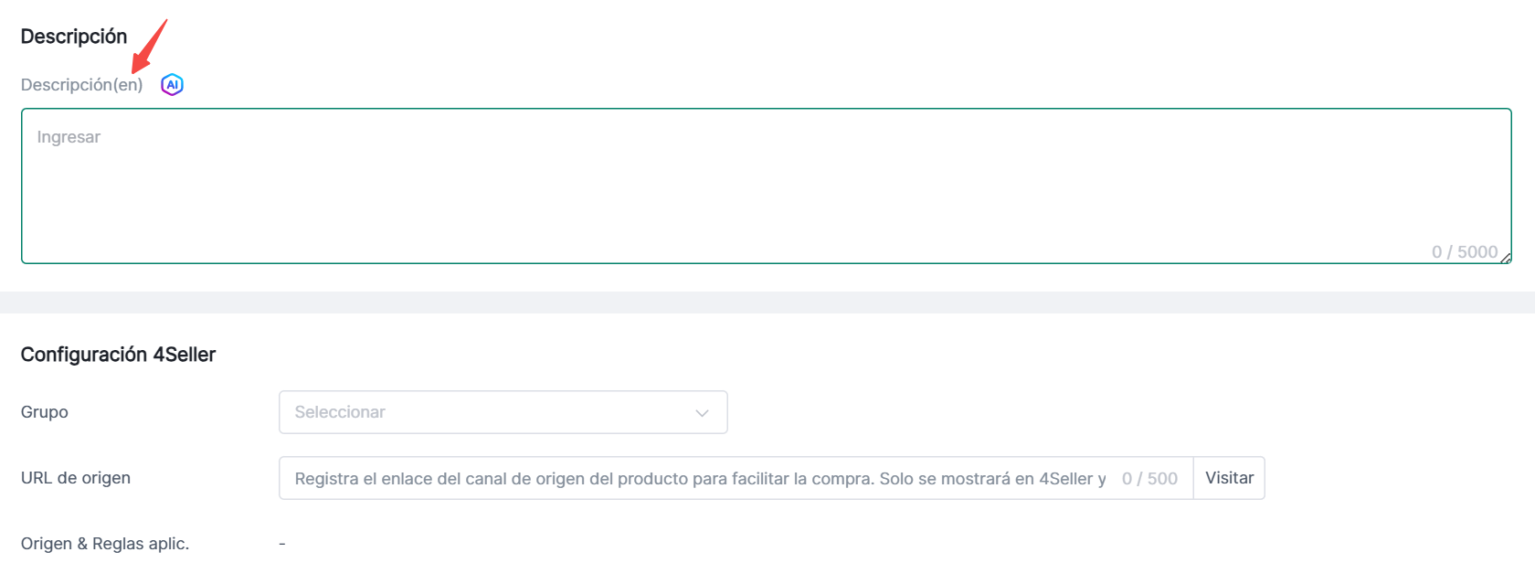 (5) Descripción: Haz clic para generar una descripción usando IA; completa el idioma correspondiente entre paréntesis.