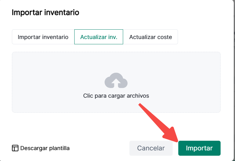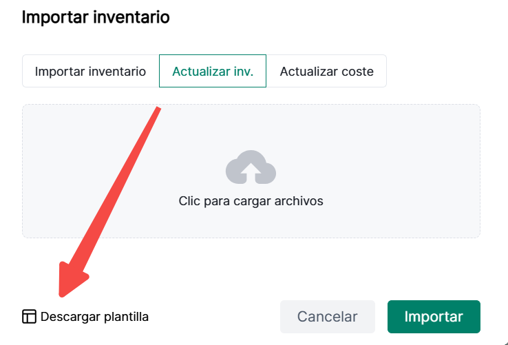 2. Selecciona Importar/Actualizar Inventario > Descargar Plantilla
