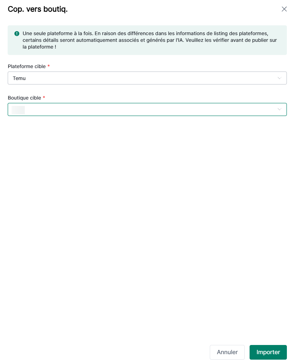 ② Sélectionnez des produits un par un ou cochez plusieurs éléments, puis cliquez sur Copier vers les boutiques.