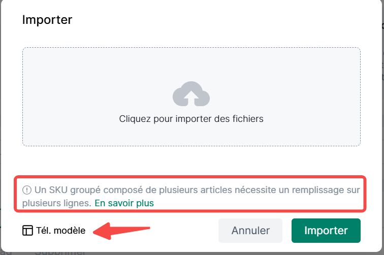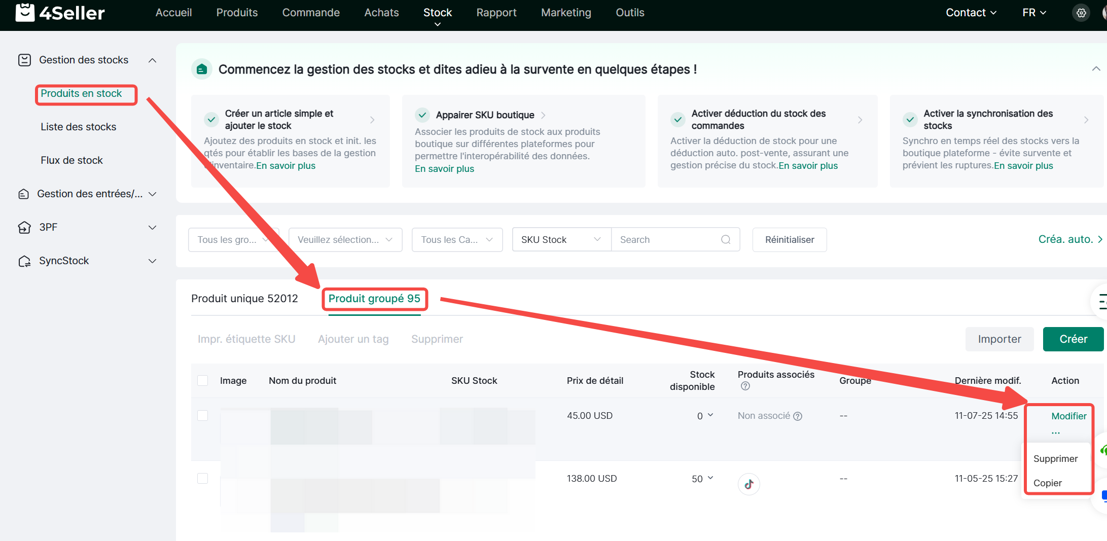 4Seller prend en charge l'importation de SKU groupés, correspondant à plusieurs sous-SKU vendus en pack (ex : 1 stylo + 1 cahier). Le stock sera déduit simultanément pour tous les sous-SKU.