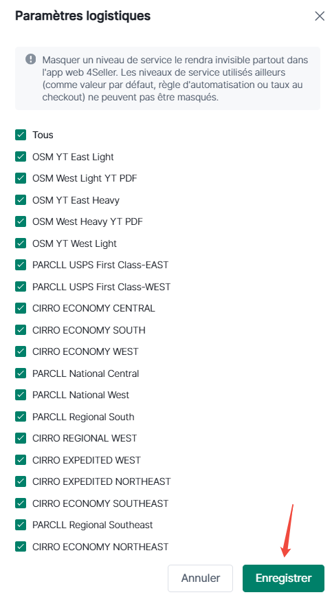 4、Cliquez sur configurer la logistique, sélectionnez le service souhaité, sauvegardez, puis choisissez le canal correspondant lors de l'achat d'étiquettes pour les commandes.