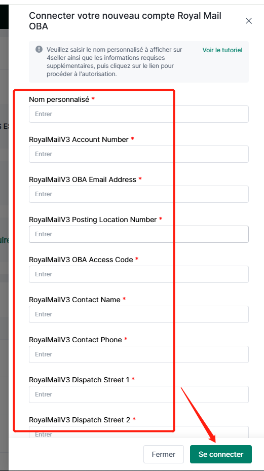 Remarque : Royal Mail V3 est connecté à 4Seller via EASYPOST.