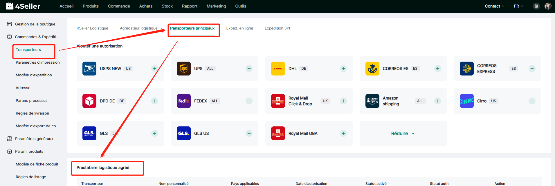Étape 3 : Vérifier la connexion dans « Prestataire logistique agréé »
