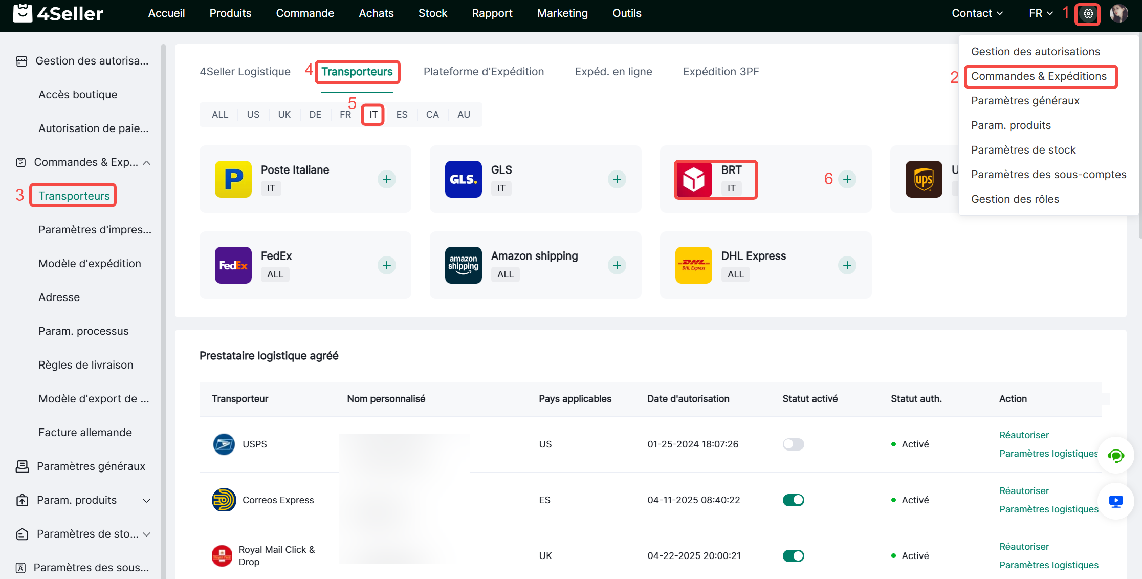 1. Cliquez sur Paramètres-Commandes & Livraison-Transporteurs-Transporteurs -Trouvez l'icône correspondante-Cliquez sur ‘+’.