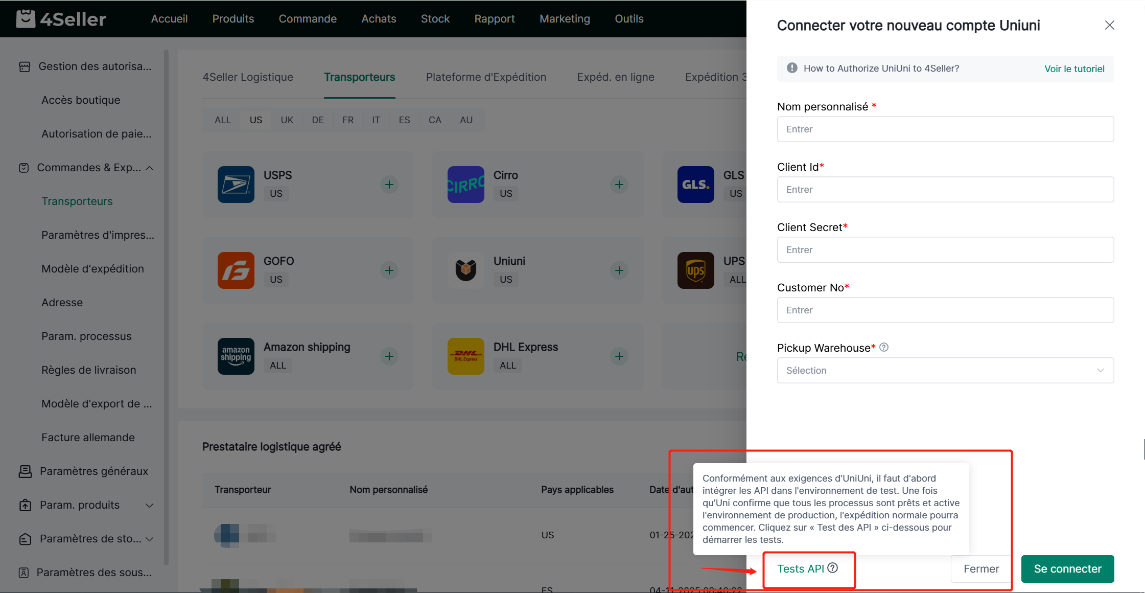Étape 5 : Réautorisez et connectez UniUni à 4Seller.