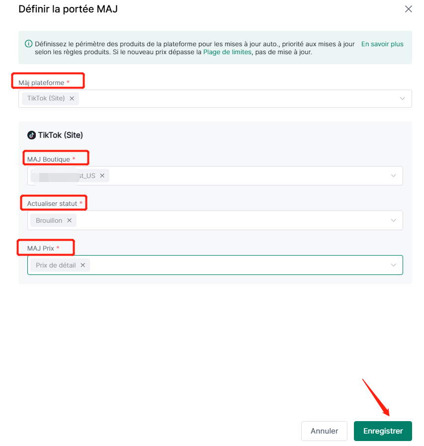 (1) Si des règles de liste sont définies dans 4Seller, la mise à jour priorisera ces paramètres.
