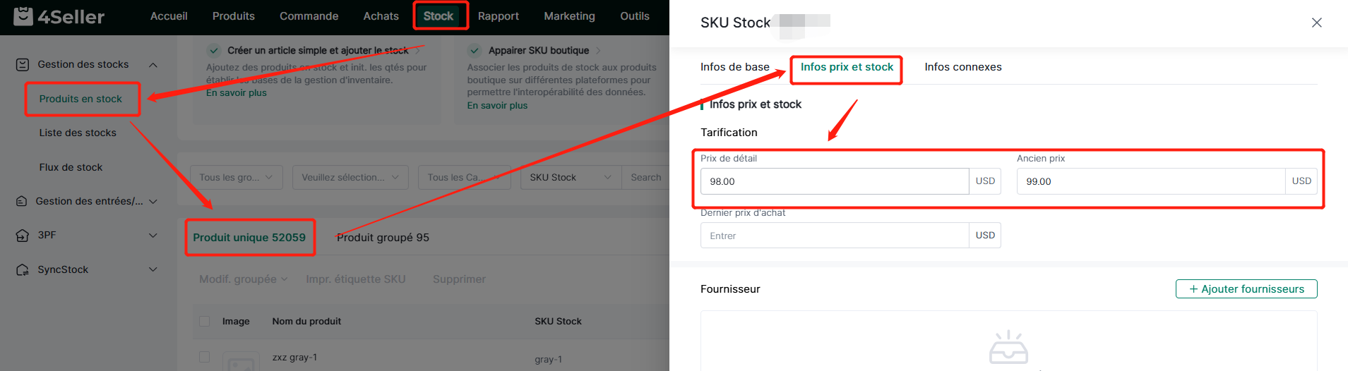 Lorsque 4Seller met à jour le prix d'un SKU Stock, si celui-ci est associé à un SKU boutique, le prix sera automatiquement mis à jour sur le produit lié.