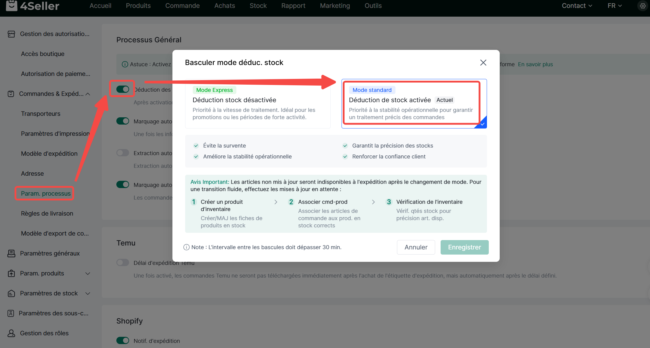 Remarque : Cette fonctionnalité est disponible uniquement en mode d'expédition standard.