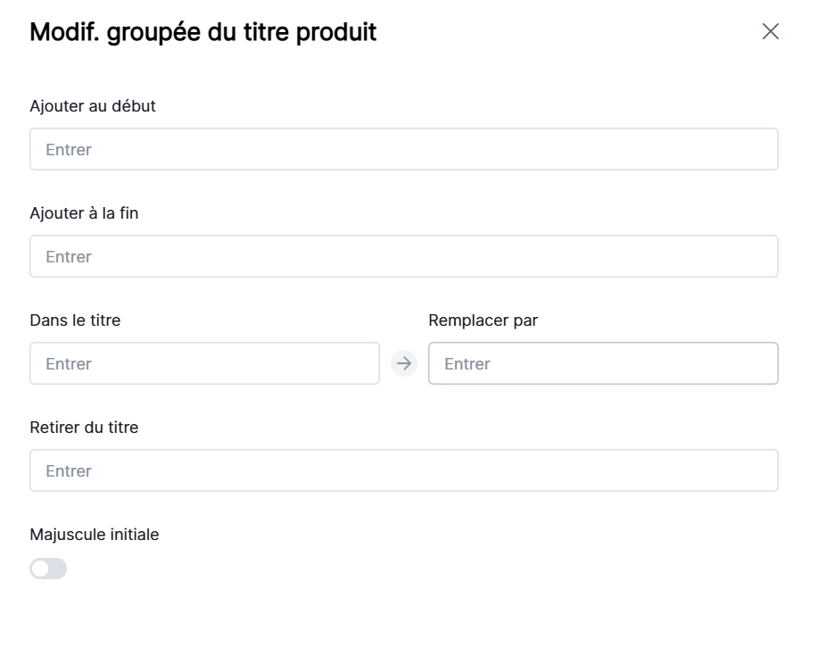 1. Modifier en masse les titres des produits : Prend en charge l'ajout, le remplacement ou la suppression de texte au début/à la fin. Cliquez sur Confirmer.