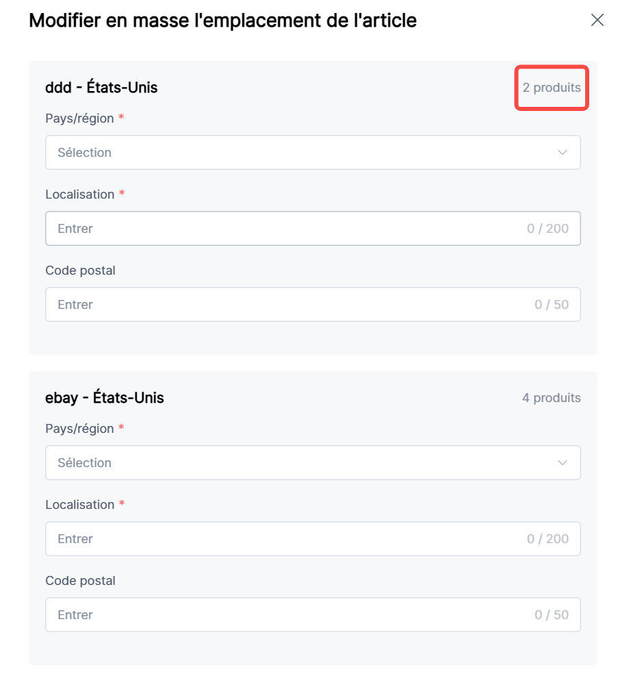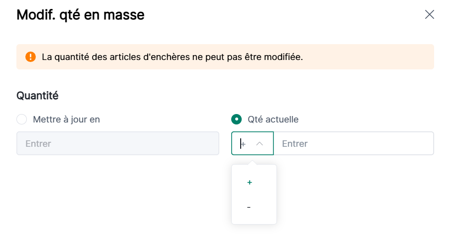 (1) Prend uniquement en charge la modification des quantités pour les listes 'Achat Immédiat' ; les quantités d'enchères ne peuvent pas être modifiées ;