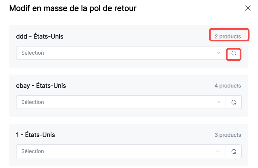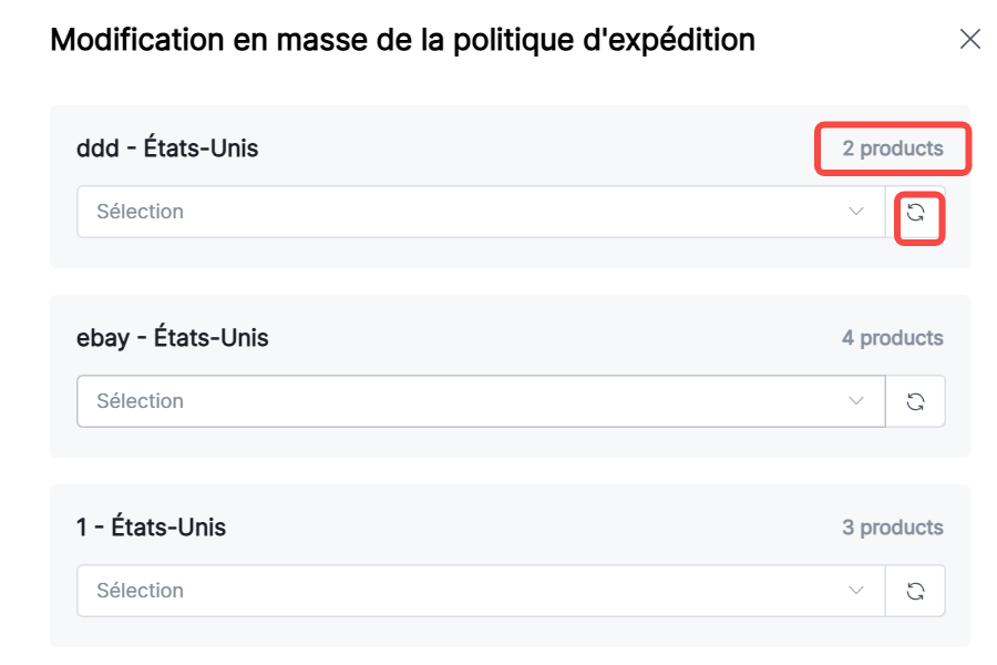 (1) Boutiques affichées par site, avec les quantités spécifiques d'articles indiquées dans le coin supérieur droit