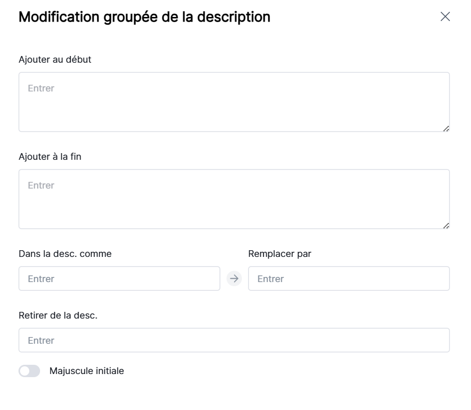 10. Modifier en masse les descriptions : Prend en charge l'ajout, le remplacement et la suppression de contenu