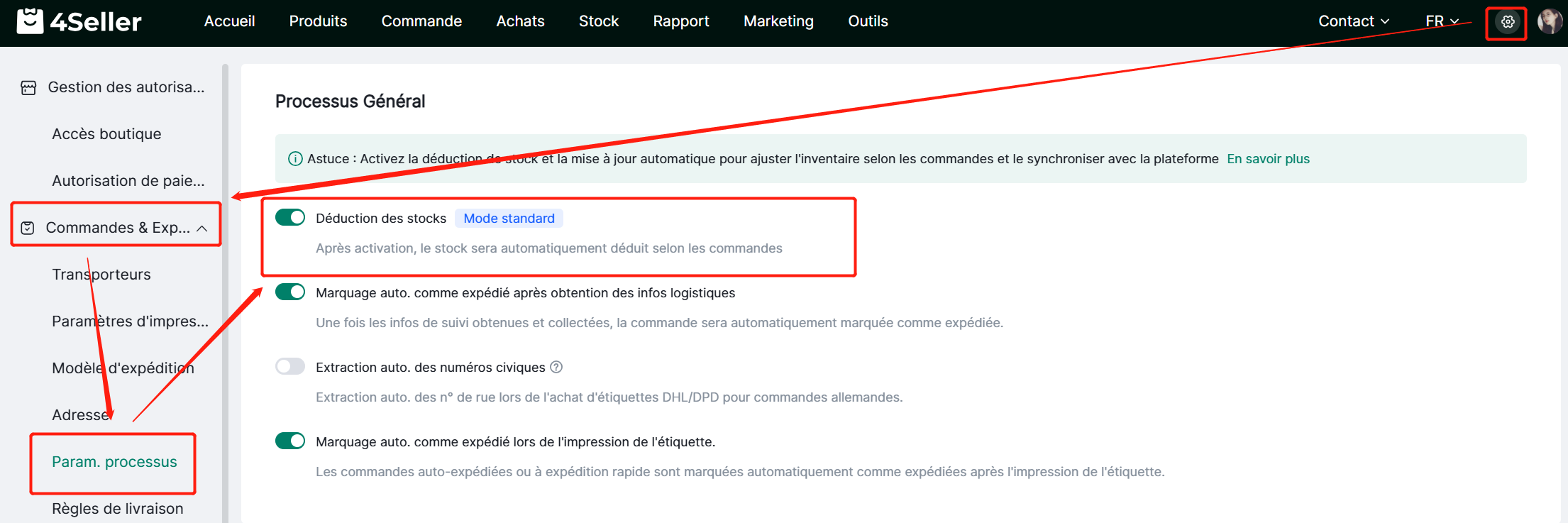 1.Vous devriez ouvrir « Déduction des stocks ».