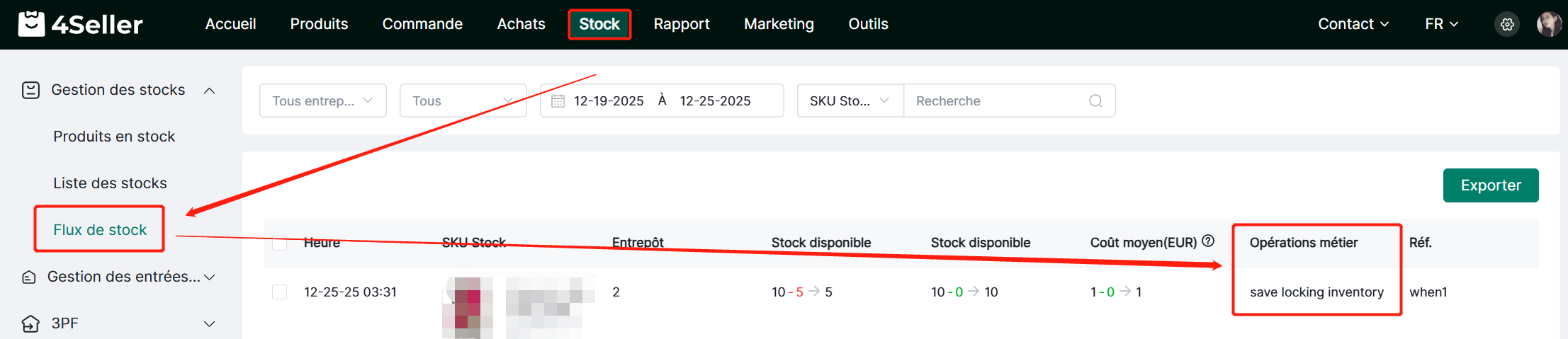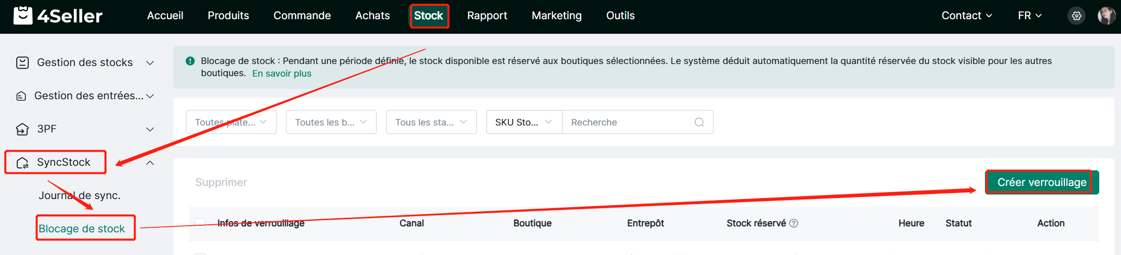 Note : Le stock verrouillé est réservé à l'avance, et déduit du SKU correspondant de la boutique selon la date de création.