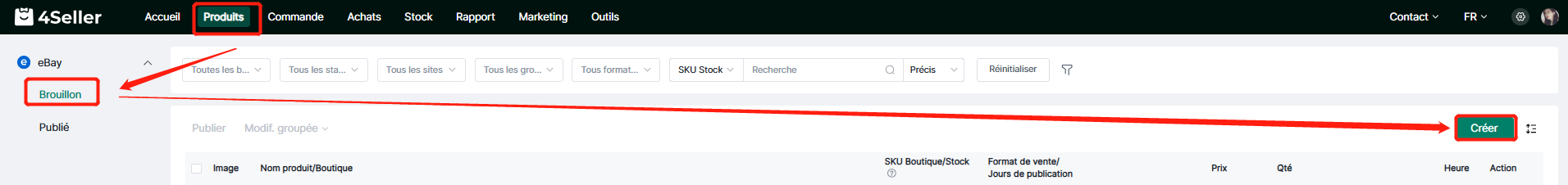 La page brouillons eBay permet de lister rapidement en référençant des informations produits existantes !