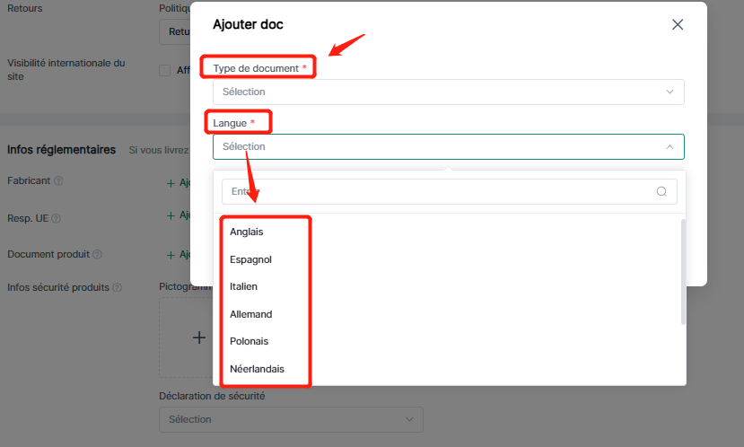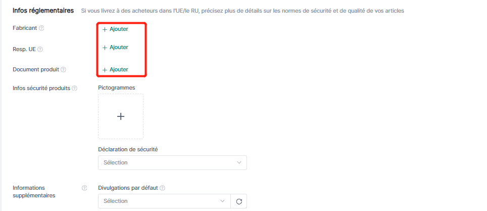 (1) Fabricant, Responsable UE, Documents produit, Infos sécurité : prise en charge d'ajout