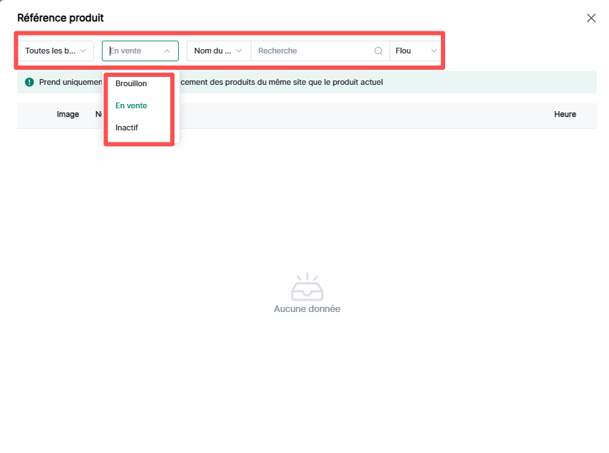 (5) État de l'article : Options synchronisées depuis la plateforme, vous pouvez choisir de remplir manuellement.