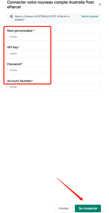 Remplissez la boîte pop-up avec les informations requises et cliquez sur Connecter.