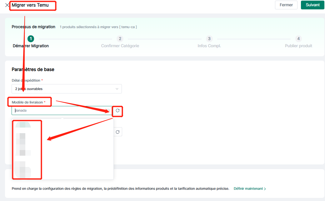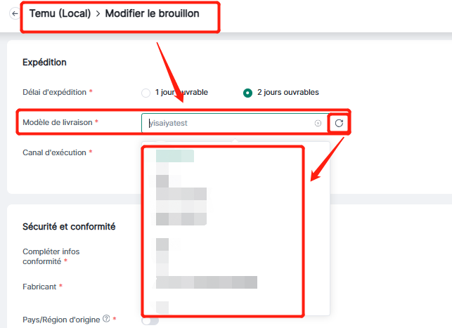 Étape 2 : Après configuration, retournez à Seller → Cliquez sur le bouton d'actualisation du modèle d'expédition pour synchroniser avec 4Seller et sélectionnez/remplissez les informations.