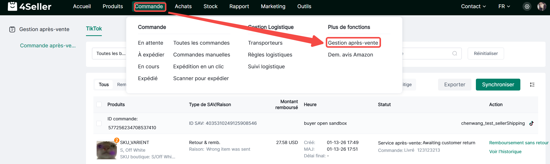 2. Commandes - Gestion SAV
